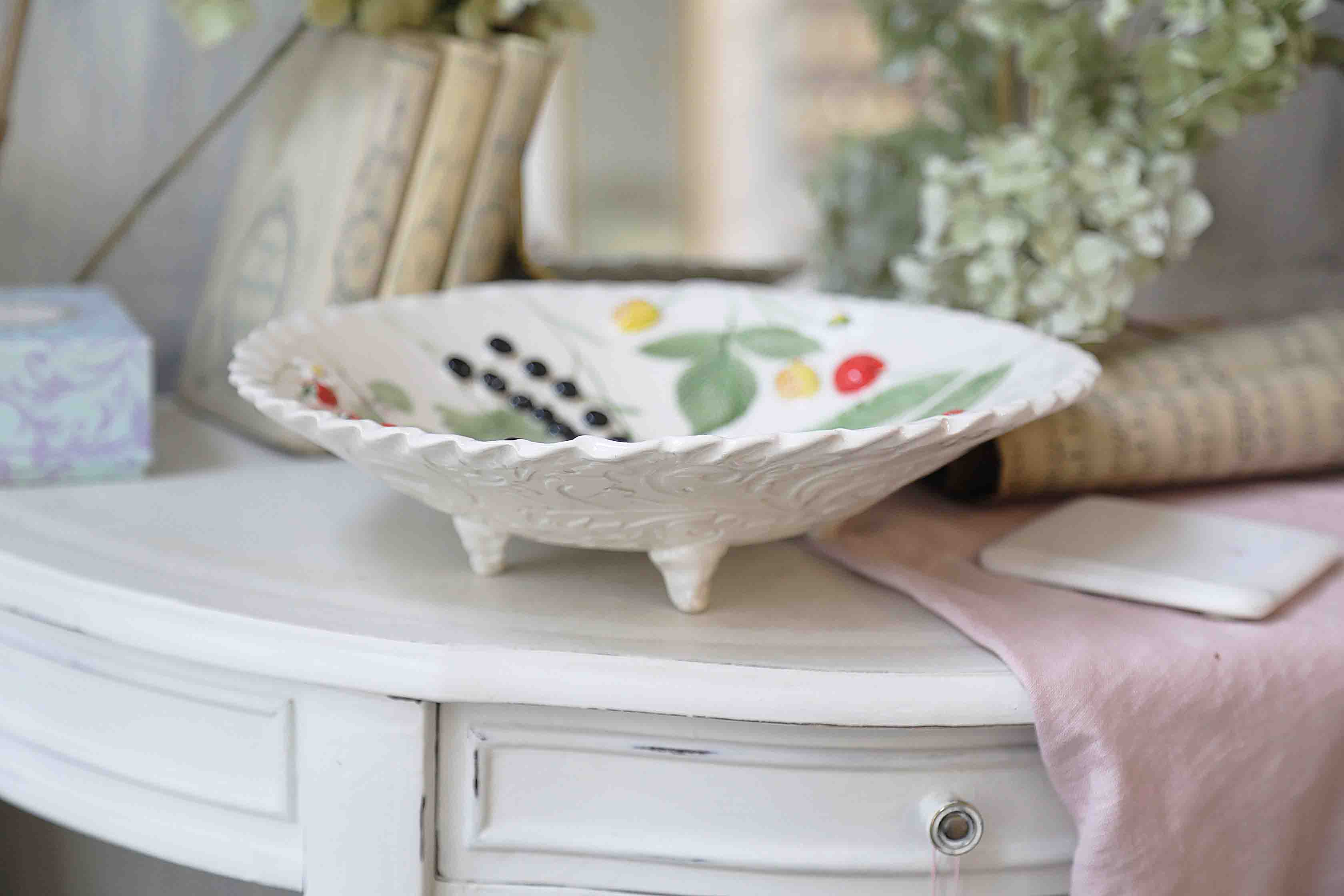 Didelis, talpus ir išraiškingas – šis rankų darbo dubuo su uogų dekoru taps stalo akcentu.