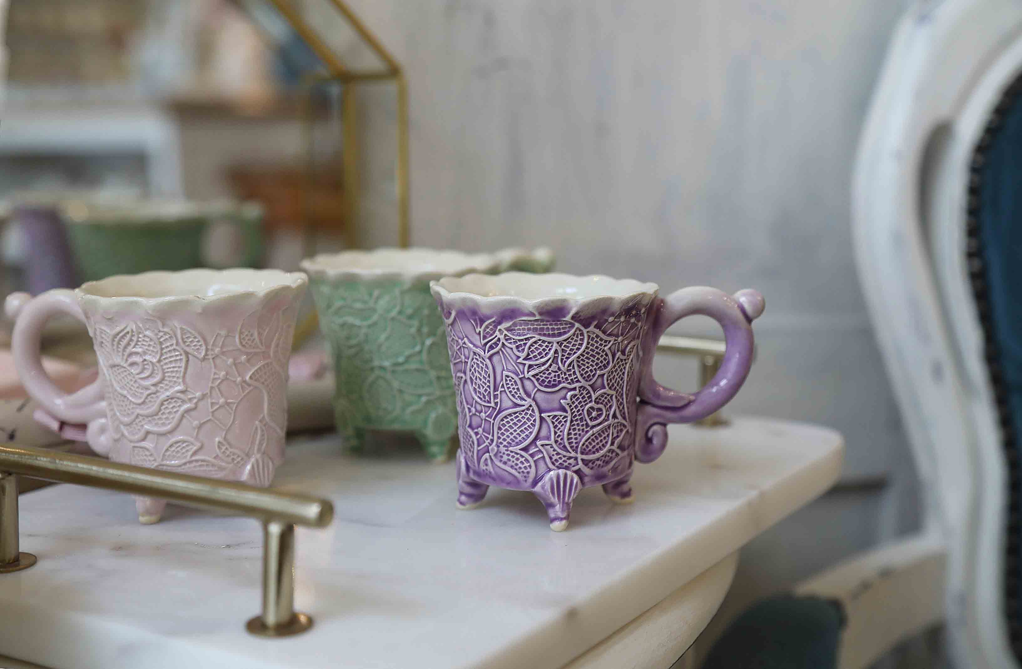 Puodelis espresso kavai, rožyno raštas.