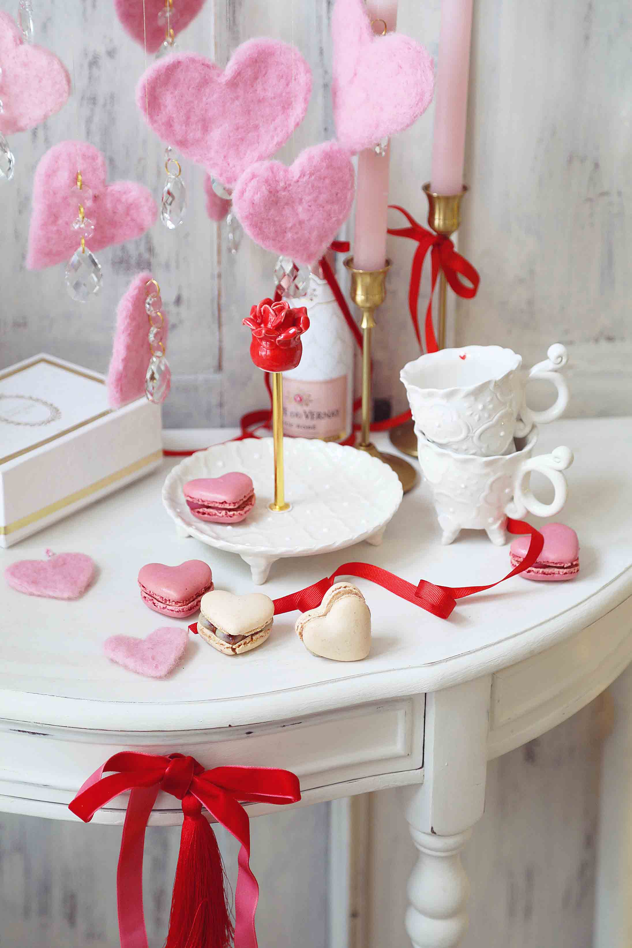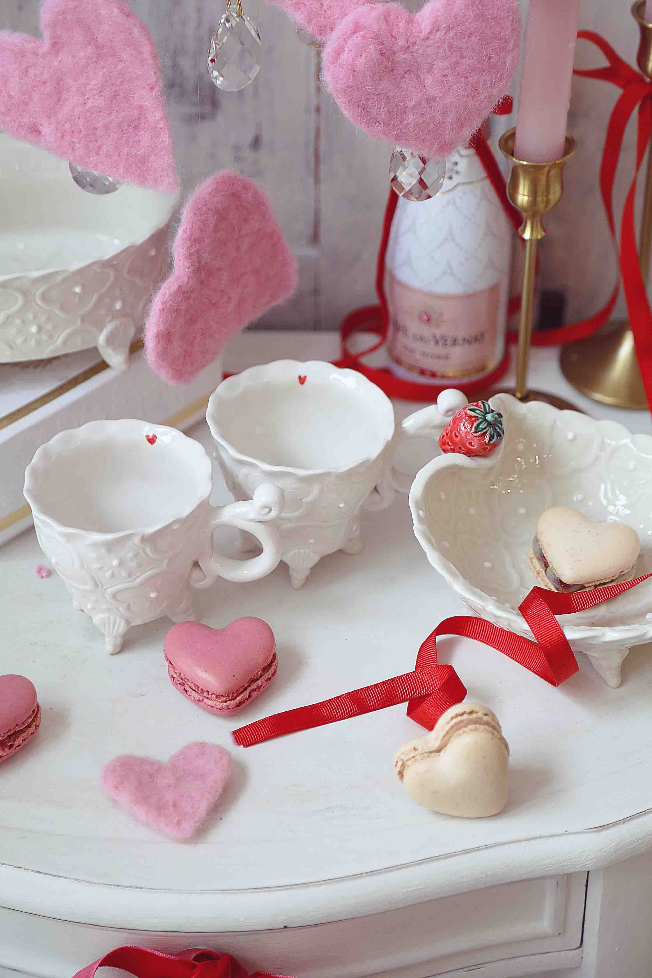 Puodelis espresso kavai, versalio raštas, su baltais porceliano taškeliais ir maža žaisminga širdute ant kraštelio.