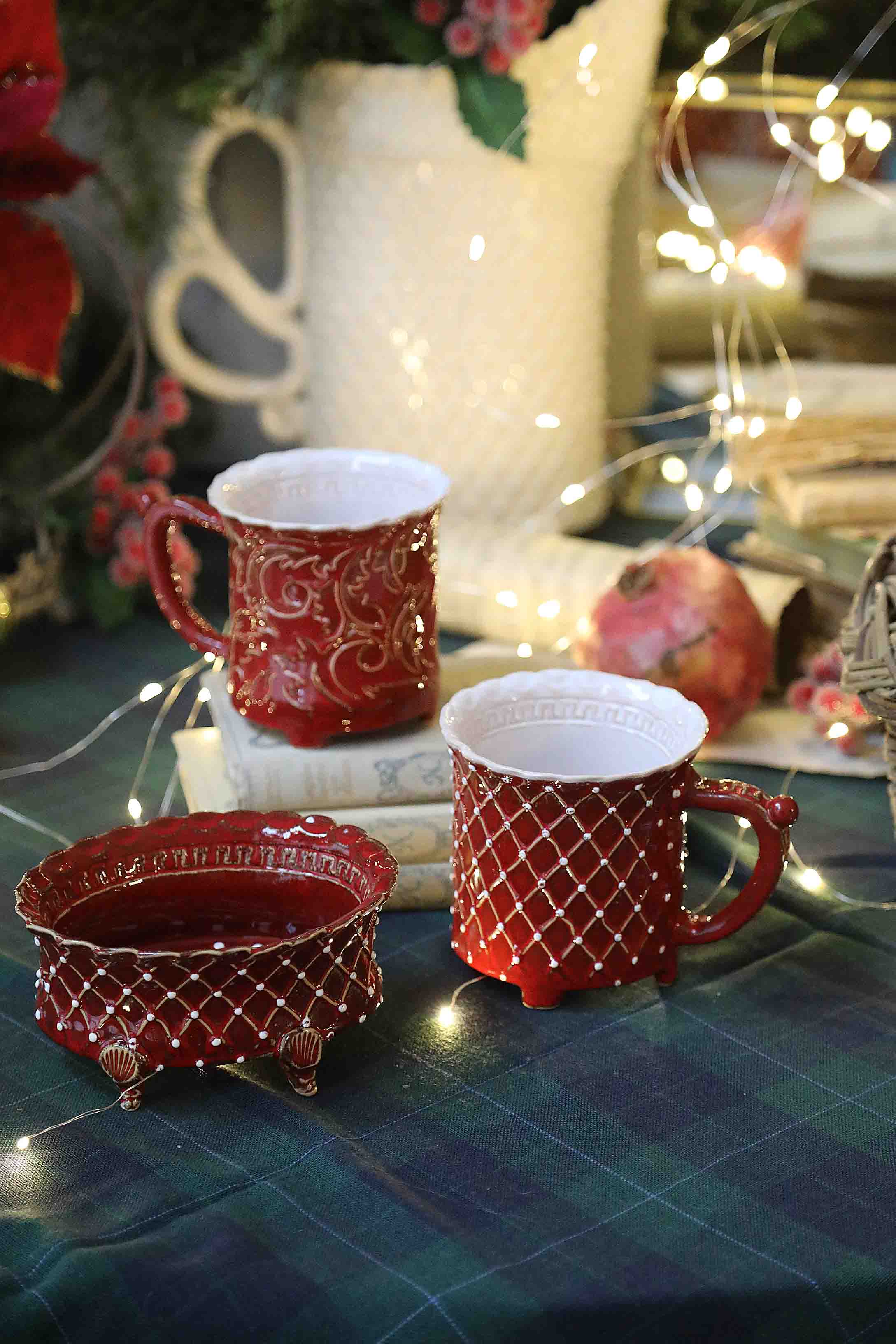 Rankų darbo indelis su rombelių dekoru. Raudono molio, baltais taškeliais. Skirta riešutams, saldainiams, padažams, glazūra skirta liestis su maistu. Taip pat tinka papuošalams, kitoms smulkmenoms.