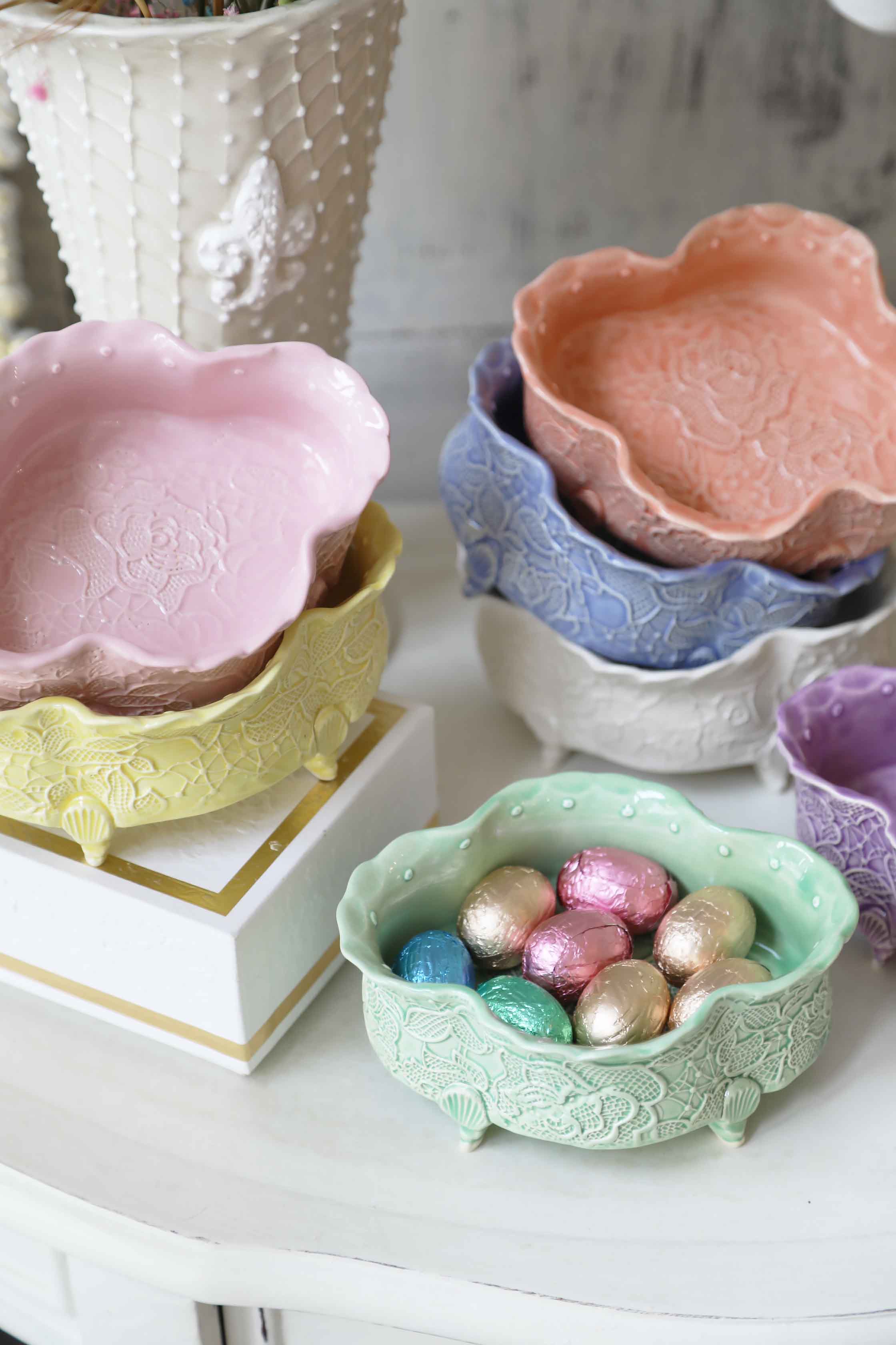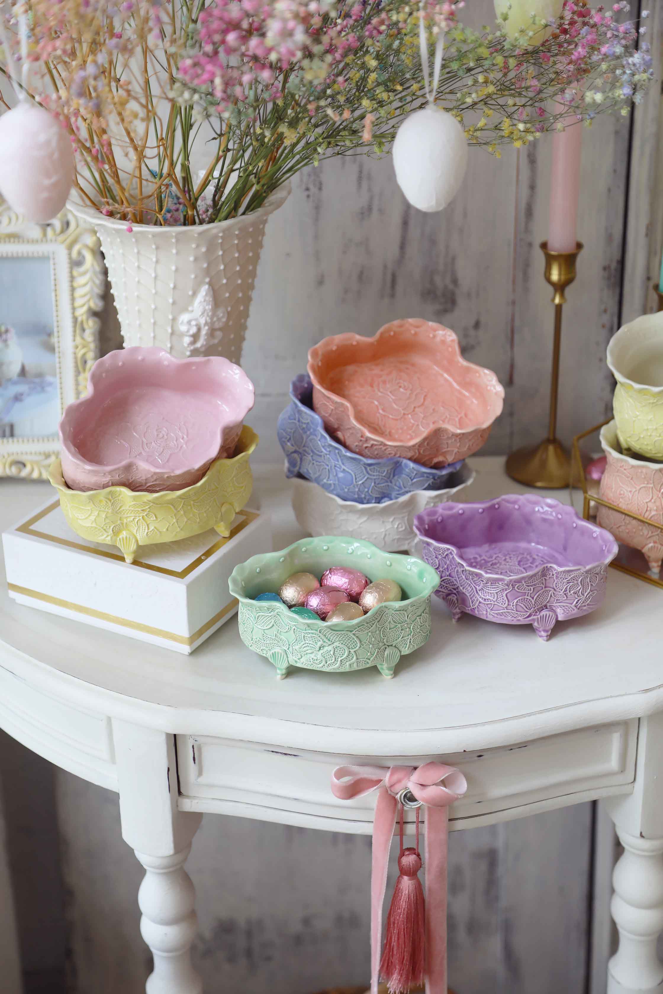 Rankų darbo keramikinis indelis – subtilaus grožio ir funkcionalumo derinys. Tinka riešutams, saldainiams ar smulkiems skanėstams patiekti. Keturlapė (quatrefoil) forma įkvėpta klasikinės architektūros ir Provanso švelnumo – puoš elegantišką virtuvę ar kavos staliuką. Įvairių raštų ir spalvų.