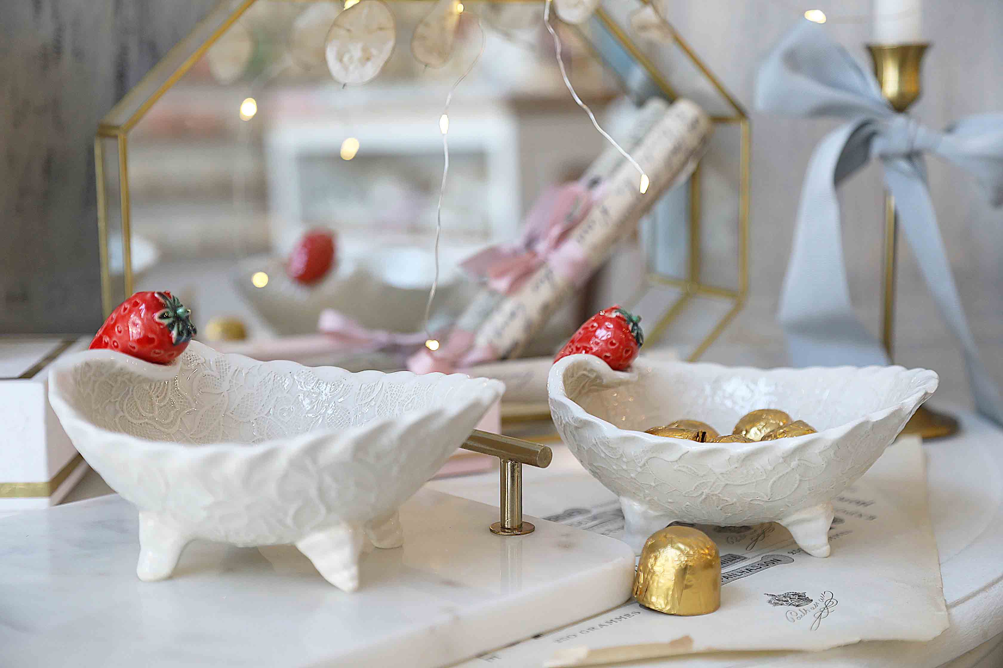 Rankų darbo indelis su prisirpusia braške ant kraštelio. Skirta riešutams, saldainiams, glazūra skirta liestis su maistu. Taip pat tinka papuošalams, kitoms smulkmenoms.