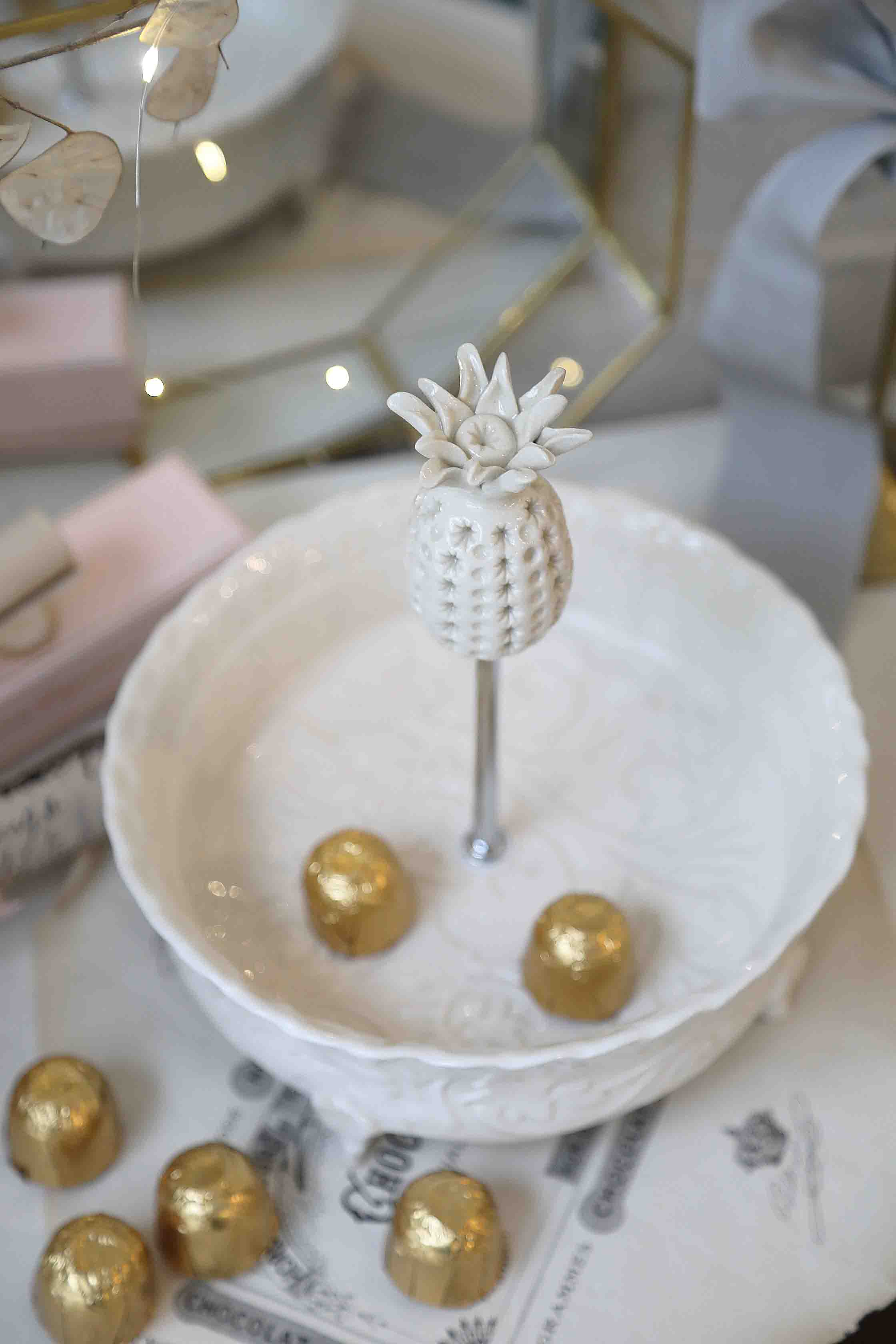 Ant sidabrinės spalvos rankenos - ananasas. Ananasas jau nuo kolonijinių laikų naudojamas dekore, kaip svetingumo ir draugiškumo simbolis, dažnai puošdavo namus, svečių kambarius, duris ir staltieses. Ananasai buvo itin reti, todėl tapo prabangos, išskirtinio skonio ženklu.