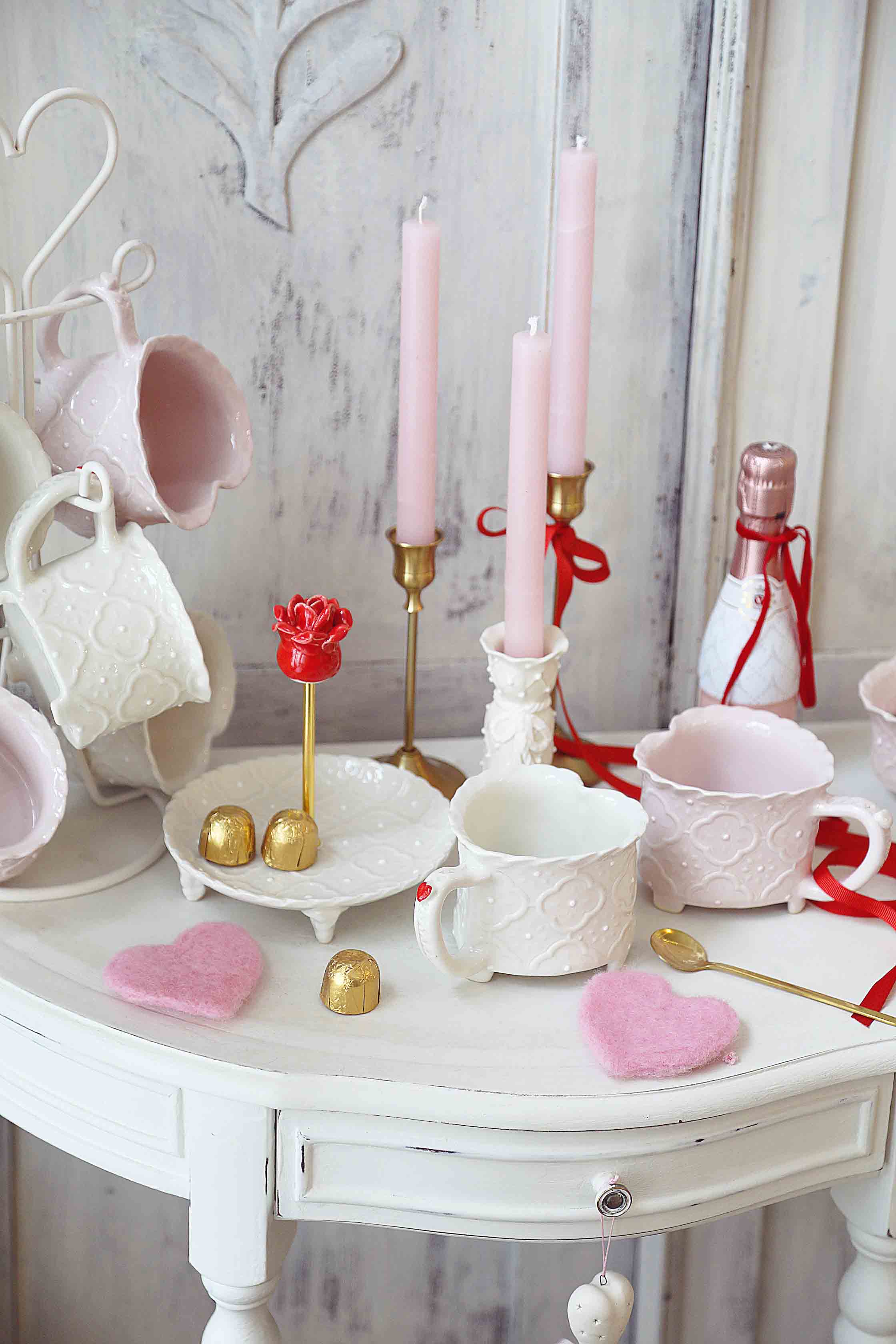 Dekoruotas versalio raštais ir raudona širdute, jis tinka viskam, kas miela ir brangu: rytinei kavai su mylimu žmogu ar šampanui su draugėmis.